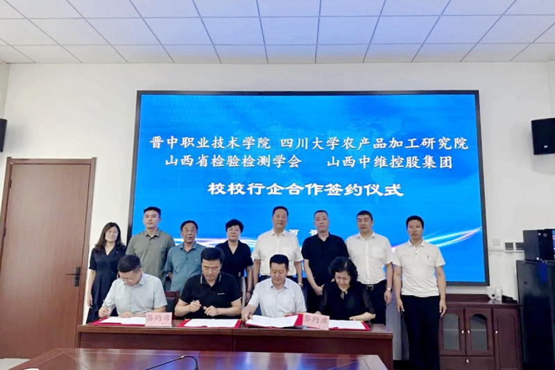 2023年8月18日,晉中職業(yè)技術(shù)學(xué)院、四川大學(xué)農(nóng)產(chǎn)品加工研究院、山西省檢驗(yàn)檢測(cè)學(xué)會(huì)、中維控股集團(tuán)“校校行企”合作洽談會(huì)議暨共建“食品產(chǎn)業(yè)學(xué)院”合作簽約儀式在晉中職業(yè)技術(shù)學(xué)院行政樓舉行。晉中職業(yè)技術(shù)學(xué)院院長雒衛(wèi)廷、四川大學(xué)農(nóng)產(chǎn)品加工研究院常務(wù)副院長趙志峰、山西省檢驗(yàn)檢測(cè)學(xué)會(huì)副會(huì)長張紅、中維控股集團(tuán)董事長郭秀忠等領(lǐng)導(dǎo)出席,與會(huì)的還有各單位相關(guān)負(fù)責(zé)同志。