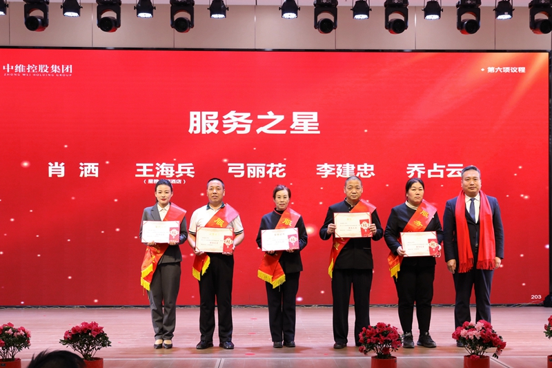 最后,郭秀忠董事長(zhǎng)作重要講話,為集團(tuán)2026年發(fā)展指明方向、注入強(qiáng)勁動(dòng)力。董事長(zhǎng)首先對(duì)總裁所作工作報(bào)告表示贊同,向受表彰的優(yōu)秀團(tuán)隊(duì)和個(gè)人致以熱烈祝賀,并向全體員工的辛勤付出表示衷心感謝。郭董講到,過(guò)去一年里,三大主營(yíng)業(yè)務(wù)在穩(wěn)定經(jīng)營(yíng)基礎(chǔ)上有亮點(diǎn)、有進(jìn)步、有成績(jī),在2026年,要繼續(xù)堅(jiān)持“以經(jīng)營(yíng)為核心、市場(chǎng)為導(dǎo)向,強(qiáng)化精細(xì)化管理”的戰(zhàn)略導(dǎo)向,穩(wěn)扎穩(wěn)打向前邁進(jìn)!他指出,要實(shí)現(xiàn)年度總體戰(zhàn)略目標(biāo),必須在機(jī)制體制、人才選拔、商業(yè)模式及盈利模式四方面堅(jiān)定不移地創(chuàng)新,同時(shí)深化責(zé)任制、項(xiàng)目制、賽馬制、獎(jiǎng)懲制、考核制、淘汰制“六制”組織管理革新,營(yíng)造干事創(chuàng)業(yè)的良好氛圍。郭董強(qiáng)調(diào),2026年是國(guó)家“十五五”規(guī)劃開(kāi)局之年,在市場(chǎng)激烈競(jìng)爭(zhēng)的同時(shí)蘊(yùn)涵發(fā)展機(jī)遇,全體中維人務(wù)必要銳意進(jìn)取、迎難而上,以堅(jiān)定的信心、昂揚(yáng)的斗志,共赴中維控股集團(tuán)高質(zhì)量發(fā)展嶄新征程!