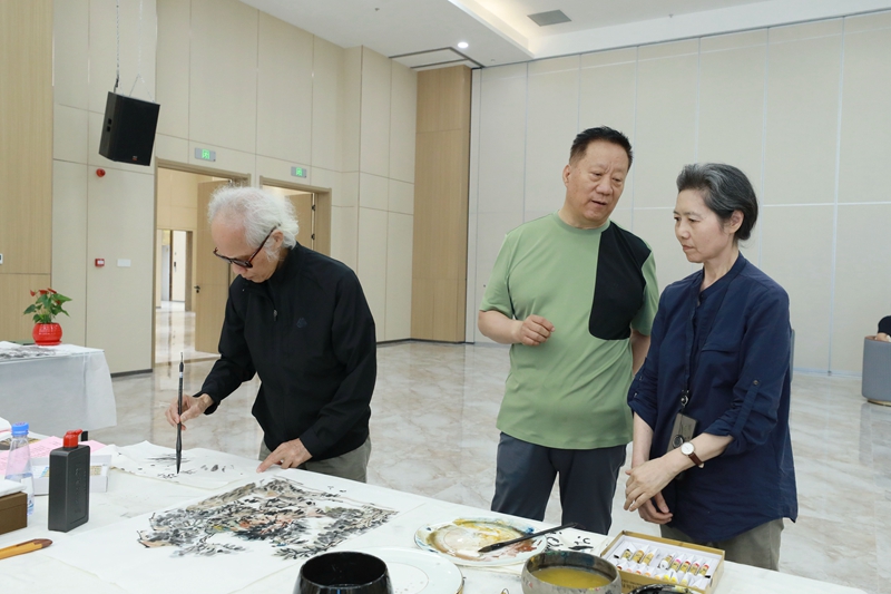 大師們沉浸創(chuàng)作,觀者屏息凝神??諝庵袕浡闩c專注,每一次落筆都引來由衷贊嘆,充分展現(xiàn)了中華書畫藝術(shù)的獨(dú)特魅力與勃勃生機(jī)。