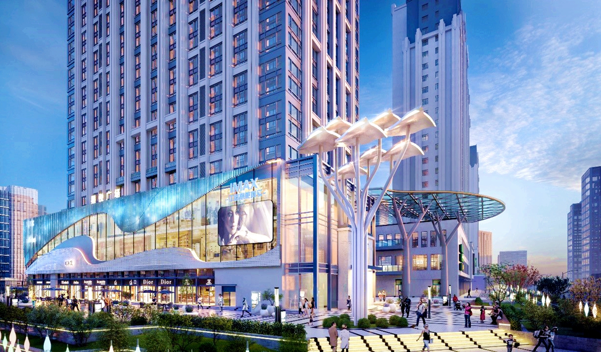南側(cè)地塊為商業(yè)地塊,命名星悅廣場,2棟稀缺復(fù)式公寓,2棟輕奢小戶型和3棟獨(dú)立商業(yè)。下沉式商業(yè)廣場為主,充分滿足小區(qū)及區(qū)域的商業(yè)配套,下沉式商業(yè)廣場兼容了購物、休閑和娛樂的功能,足不出戶滿足業(yè)主的綜合需求,旨在將該廣場打造為大學(xué)城的時(shí)尚商業(yè)綜合體。除此之外,該地塊還配建有兩個(gè)大型的生活廣場,一個(gè)為體健廣場,一個(gè)為音樂廣場,充分滿足了業(yè)主及周邊人口的運(yùn)動(dòng)及休閑需求。